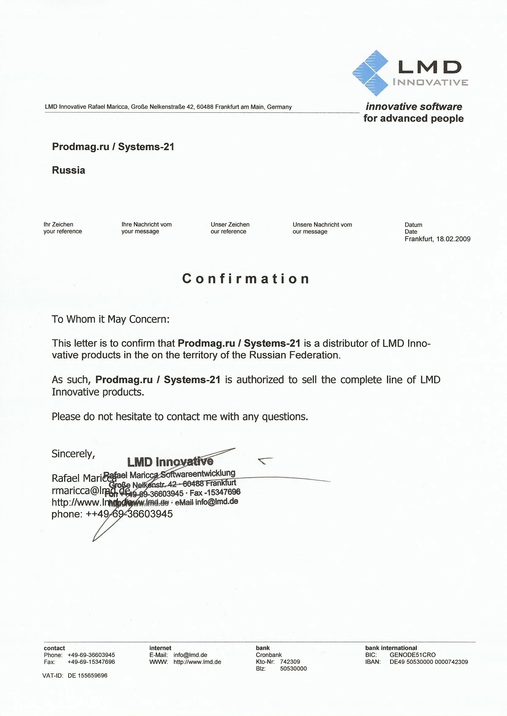 Узнать цены и условия поставки на продукты компании LMD Innovative, а так же получить консультацию по лицензированию Вы можете отправив нам запрос.